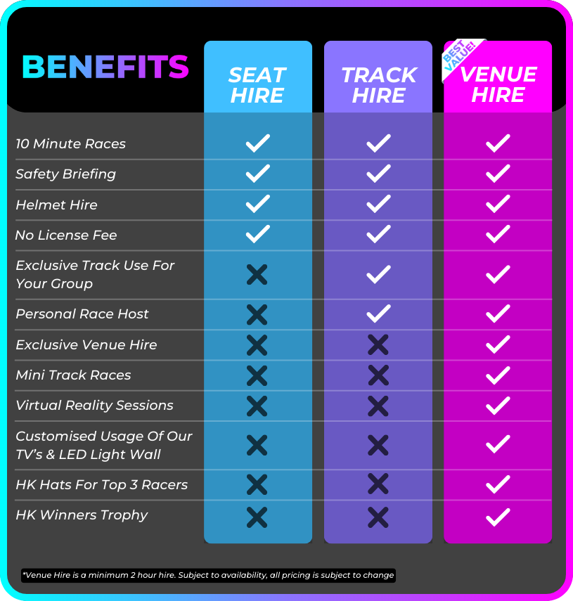 Choose from one of the 3 different options when hosting your event at Hyper Karting.