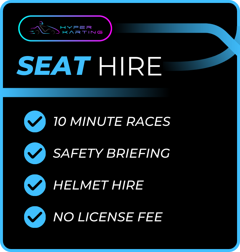 Hyper Karting Seat Hire allows smaller groups to experience the thrill of Hyper Karting whilst racing alongside other groups! This option allows you to purchase anywhere from 1 to 16 seats per race, depending on the size of your group.